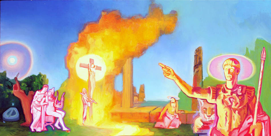 "Allegory, Augustus", oil, 24" x 48", $1800
