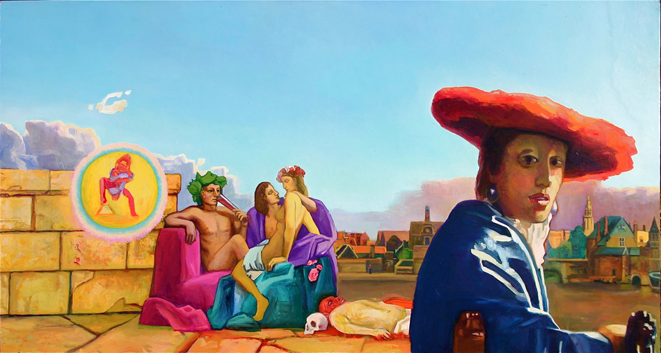 "Allegory, The Red Hat, Delft", oil, 24" x 44", $2000