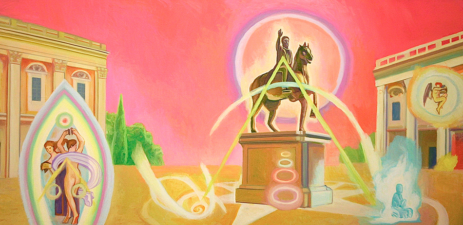 "Allegory, Marcus Aurelius", oil, 22" x 44", $1500