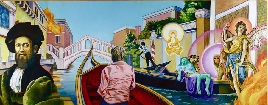 "Allegory, Marco Polo in Venice, oil, 24" x 61", $2200
