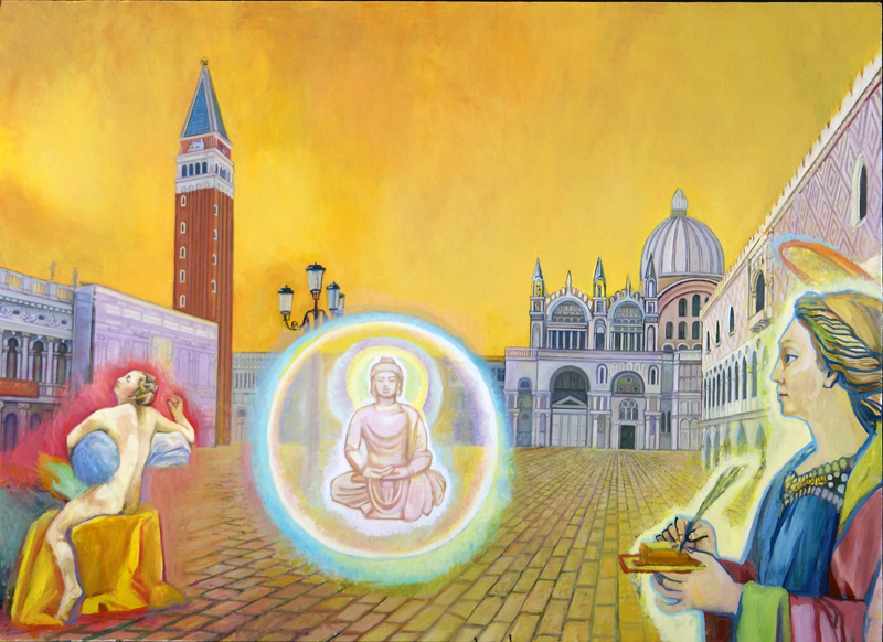 "Marco Polo in St. Mark's Square" oil, 24" x 33", $1500