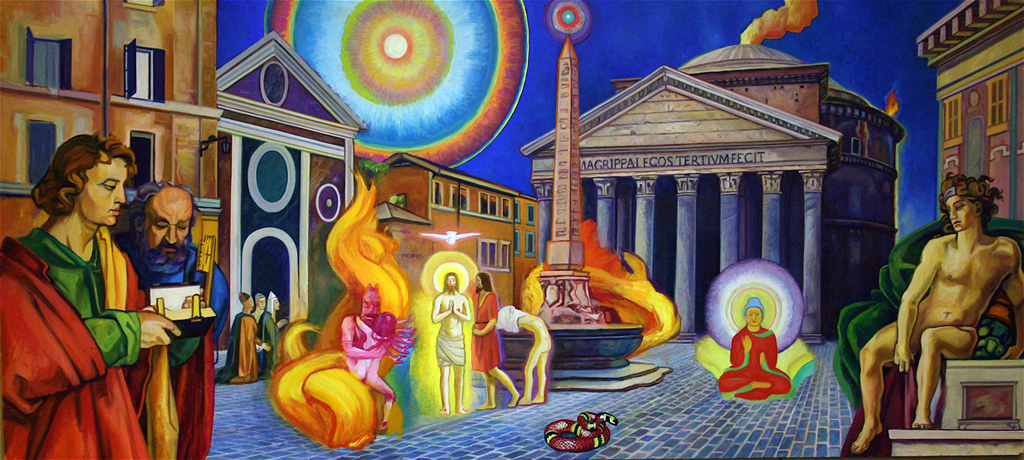"Rome, Pantheon, Baptism", oil, 24" x 54", $2000